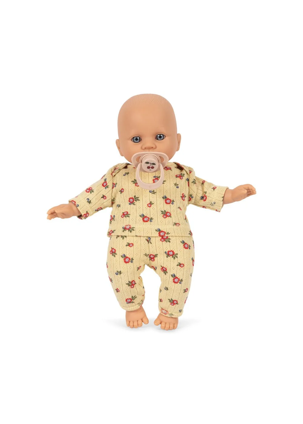 The Fraise doll comes dressed in a delightful two-piece cotton set featuring a strawberry print.