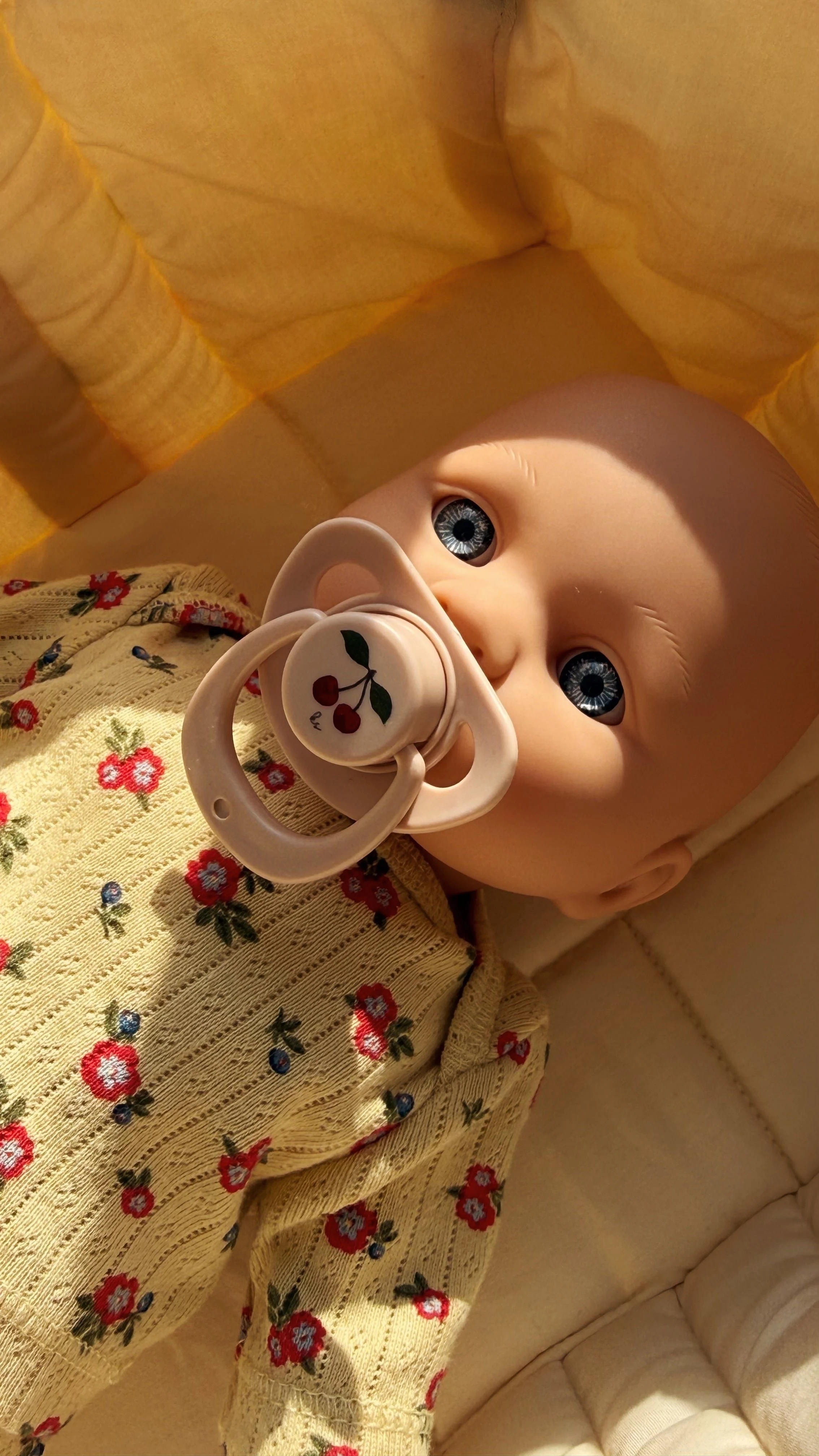 Meet the Fraise Baby Doll, a sweet addition to our Konges Sløjd collection at DluluKaloo. Dressed in a charming strawberry-themed outfit, this doll is a smaller version of our classic dolls, making it perfectly sized for little hands to hold and cuddle.
